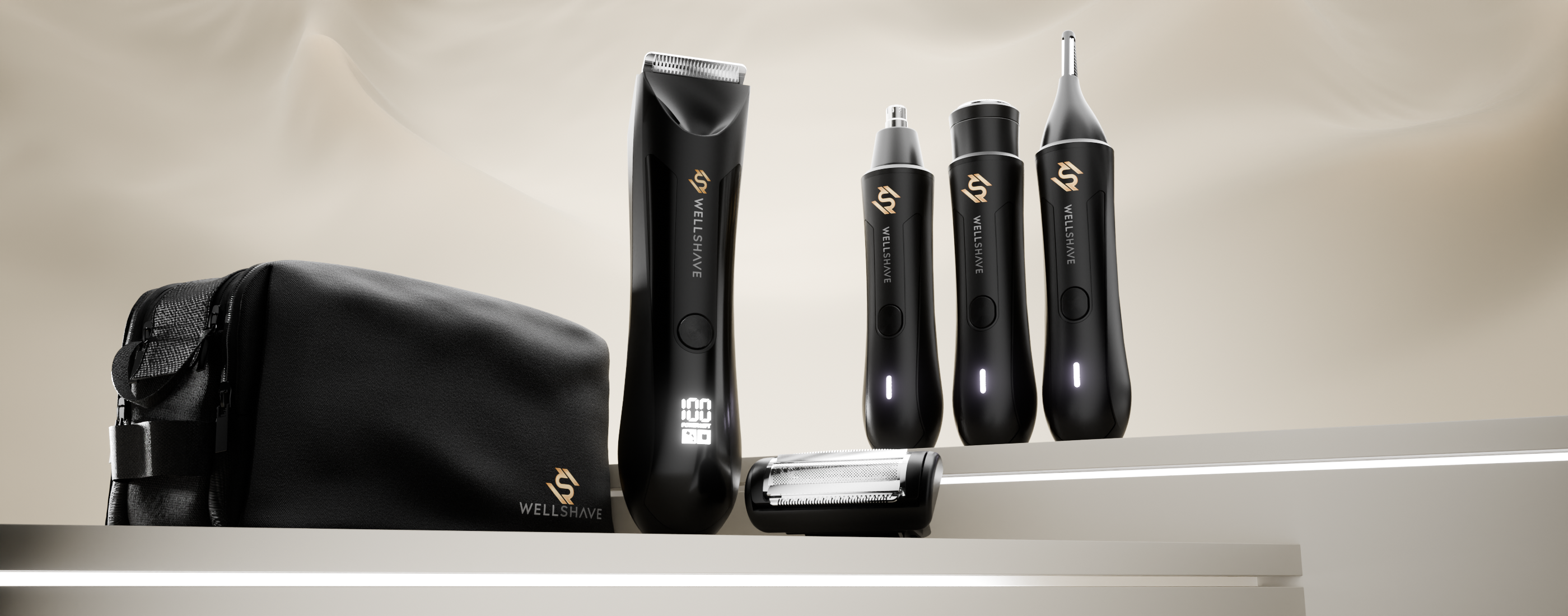 Het All-in-One Groom Pakket Ultra bevat de best beoordeelde tools van Wellshave: de Groom Guard Pro voor krachtig en veilig trimmen van je lichaam, de Neustrimmer Advance voor precisie in detailzones, én een luxe toilettas + reistas om alles netjes en compact mee te nemen.